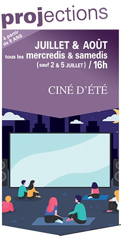 CINÉ D'ÉTÉ mercredis 9, 16, 23 et 30 juillet à 16h samedis 12, 19 et 26 juillet à 16h samedis 2, 9, 16, 23 et 30 août à 16h mercredis 6, 13, 20 et 27 août à 16h mercredi 3 et samedi 6 septembre à 16h