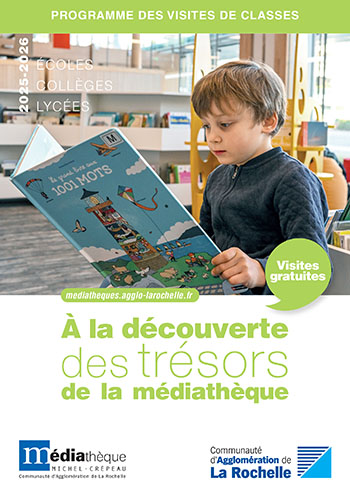 Le programme 2025/2026 des visites à destination du public scolaire est disponible. Les inscriptions à ces visites gratuites seront ouvertes à la rentrée à l'adresse groupes.mediatheque@agglo-larochelle.fr.