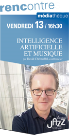 Vendredi 13 octobre à 16h30 Médiathèque Michel-Crépeau INTELLIGENCE ARTIFICIELLE ET MUSIQUE par David Christoffel, conférencier