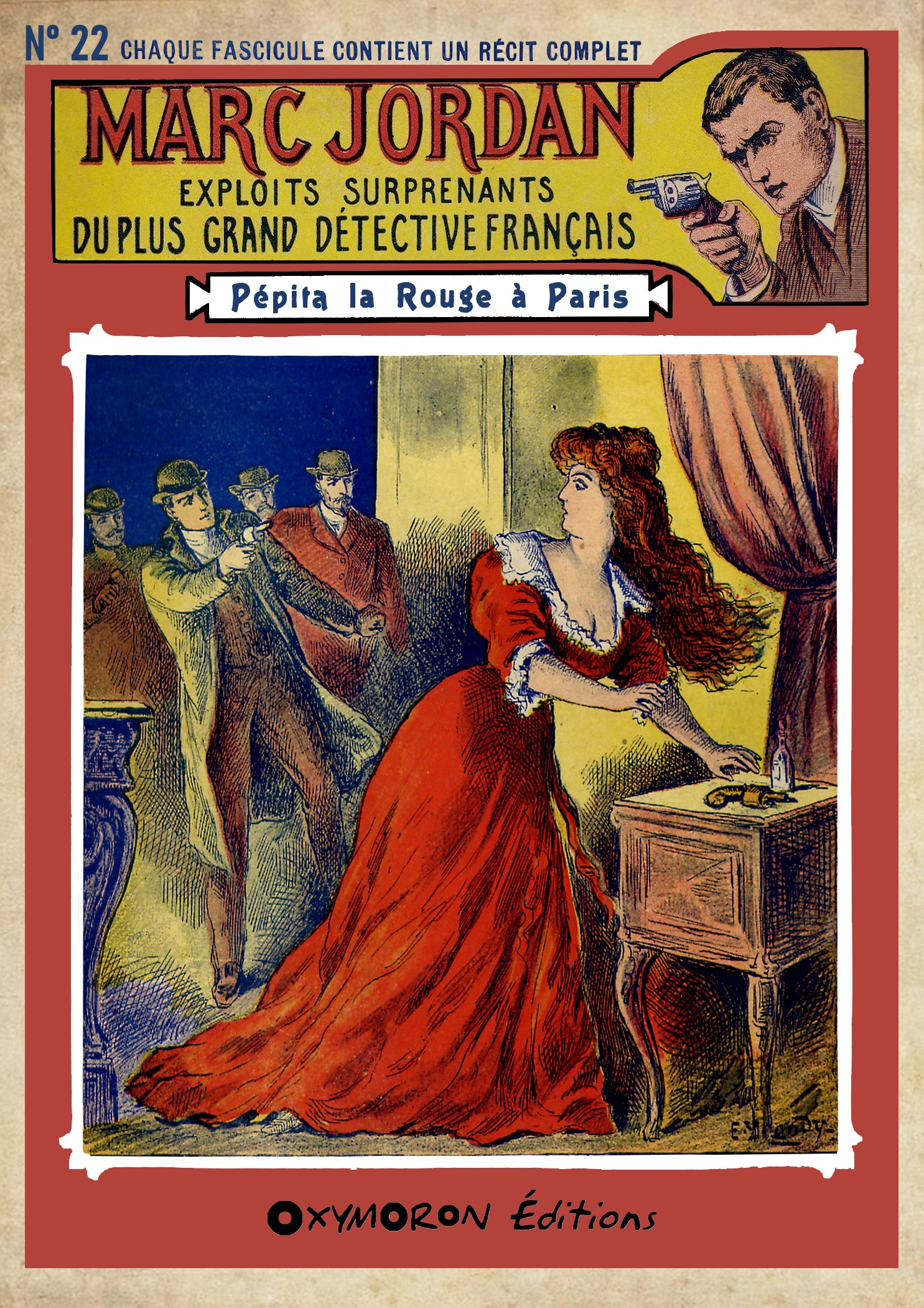 Pépita la Rouge est de retour à Paris !Marc JORDAN en est convaincu, son fidèle lieutenant, Fil-en-Quatre, est persuadé de l’avoir vue monter dans une voiture rouge.Rouge ! La couleur de l’automobile qui a violemment percuté la sienne quelques minutes auparavant et dont le chauffeur s’est enfui sans demander son reste.Ainsi, l’ennemie jurée du grand détective a une nouvelle fois attenté à sa vie.Et quand Pépita est là, le comte Cazalès n’est jamais très loin !Marc JORDAN va enfin avoir l’occasion d’arrêter les deux plus terribles criminels qu’il ait eu à affronter...
