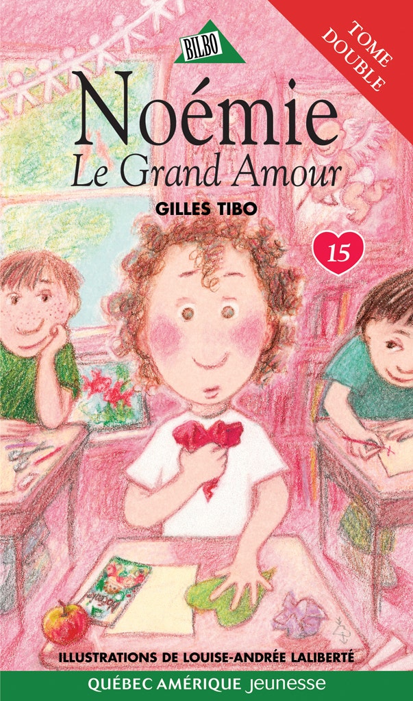 Malgré ses sept ans et trois quarts, Noémie a toujours eu une vie fort mouvementée ! Cette fois-ci cependant, ce n’est pas son imagination galopante qui lui joue des tours : quelqu’un l’aime et fait tout en son pouvoir pour le lui montrer… anonymement. Noémie, qui ne s’attendait pas du tout à la visite de Cupidon, en voit sa vie totalement bouleversée. C’est que ça peut être épeurant l’amour…C’est avec un plaisir évident que Gilles Tibo a concocté cette quinzième aventure de Noémie, une histoire à la fois rigolote et angoissante qui montre que l’amour n’est jamais simple, mais toujours fantastique lorsque partagé. Encore une fois, l’auteur a fait appel à la sensibilité de l’illustratrice Louise-Andrée Laliberté pour mettre ses mots en images.Cette journée avait pourtant débuté comme toutes les autres. Mais c’était sans compter le destin de Noémie et son horoscope de la journée : « Vous connaîtrez une journée extraordinaire ! Un grand événement changera le cours de votre vie ». Malgré son imagination débordante, Noémie tente de rester calme et elle y parvient plutôt bien jusqu’à ce qu’elle trouve, dans sa grammaire, une feuille sur laquelle est dessiné un cœur. Prise entre l’insistance de son admirateur secret et ses amies qui veulent tout connaître de ses histoires galantes, Noémie manque d’air. Elle ne connaît pas encore l’amour qu’elle en a déjà assez !